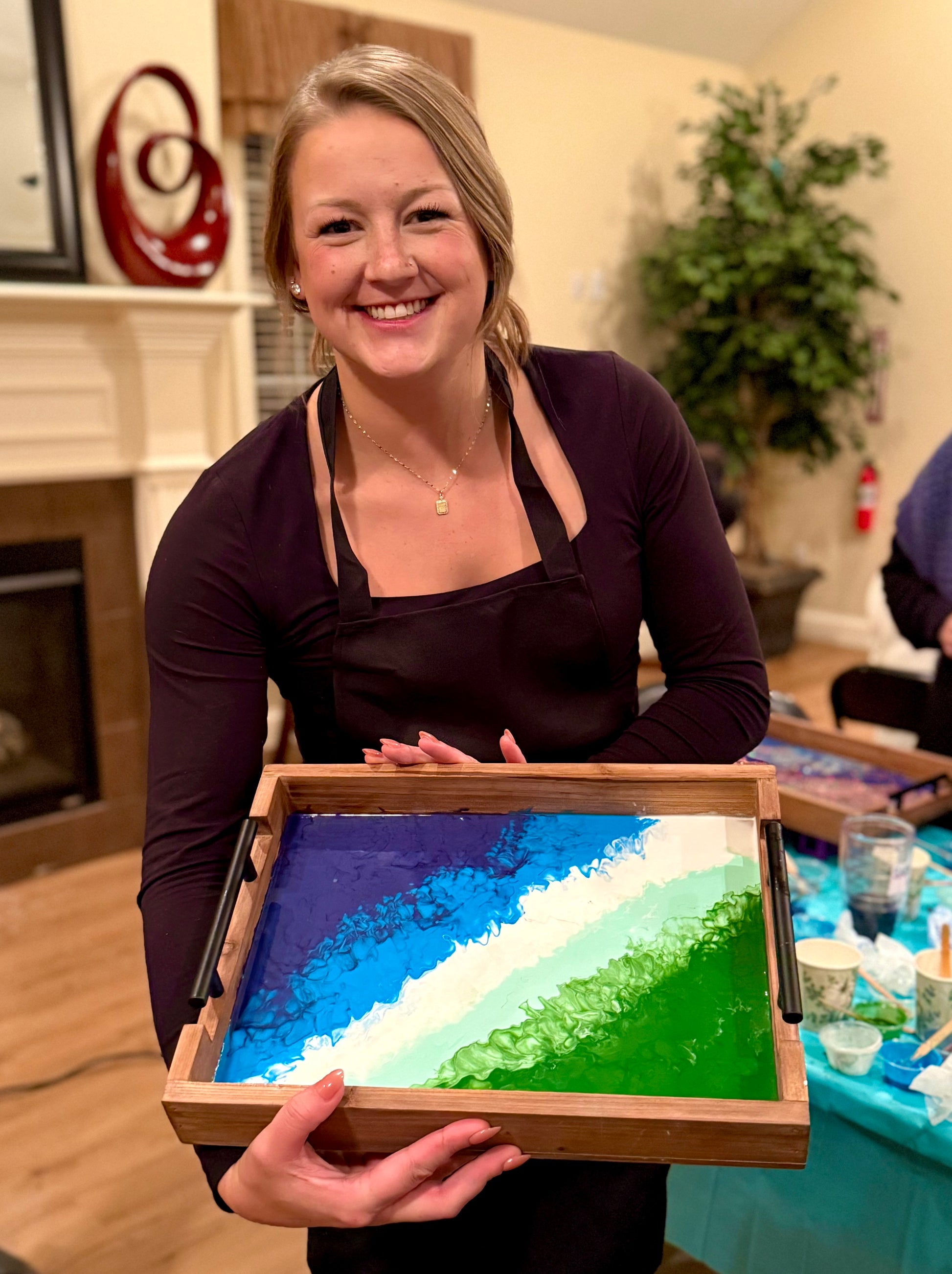 Bring a friend or two to socialize and create a colorful resin board/tray!