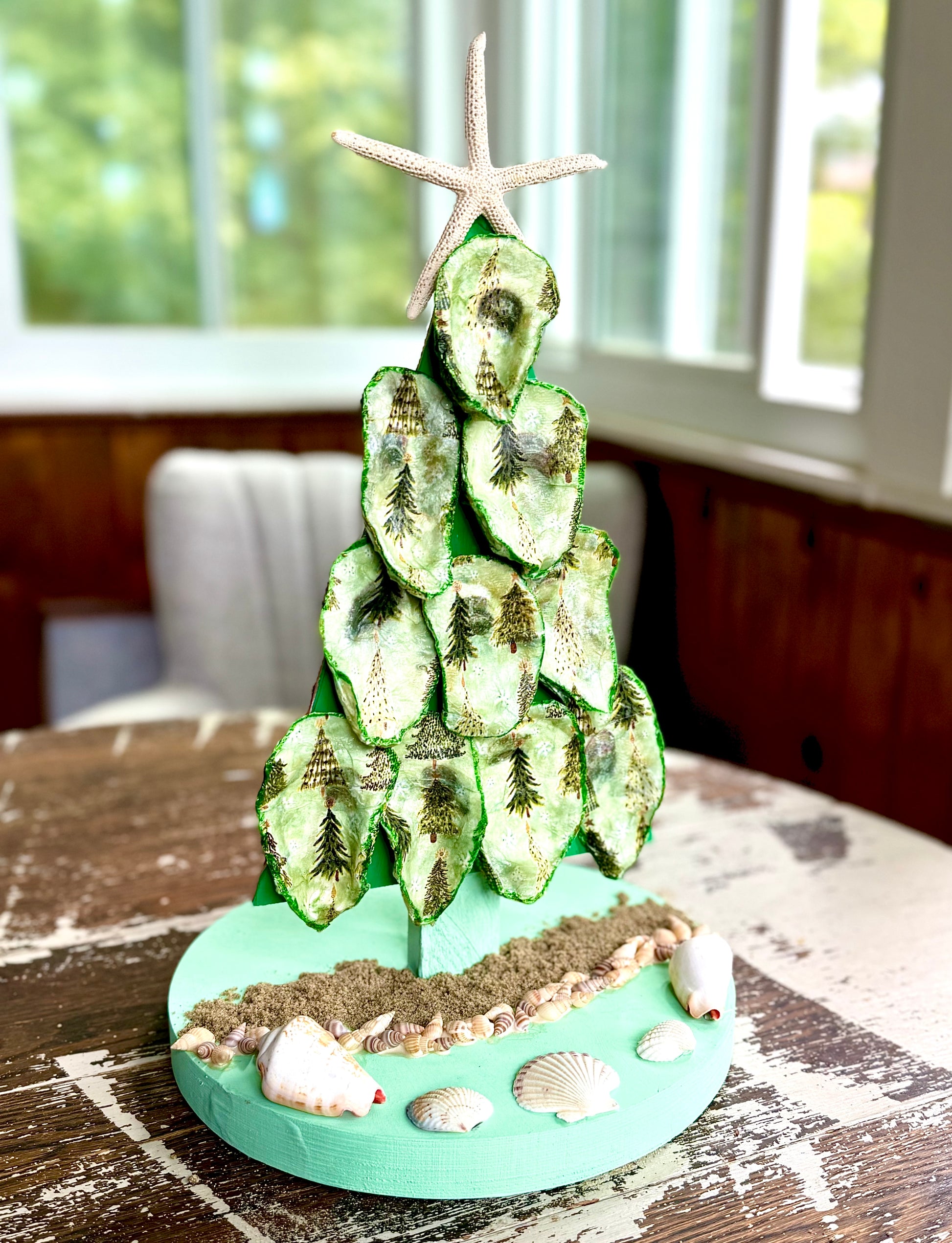 **Feel free to bring a charcuterie board or other delicious food (no alcohol please) to enjoy while you are working on your beautiful decoupage shell tree project. These trees measure 15'' high and 10'' wide with base.