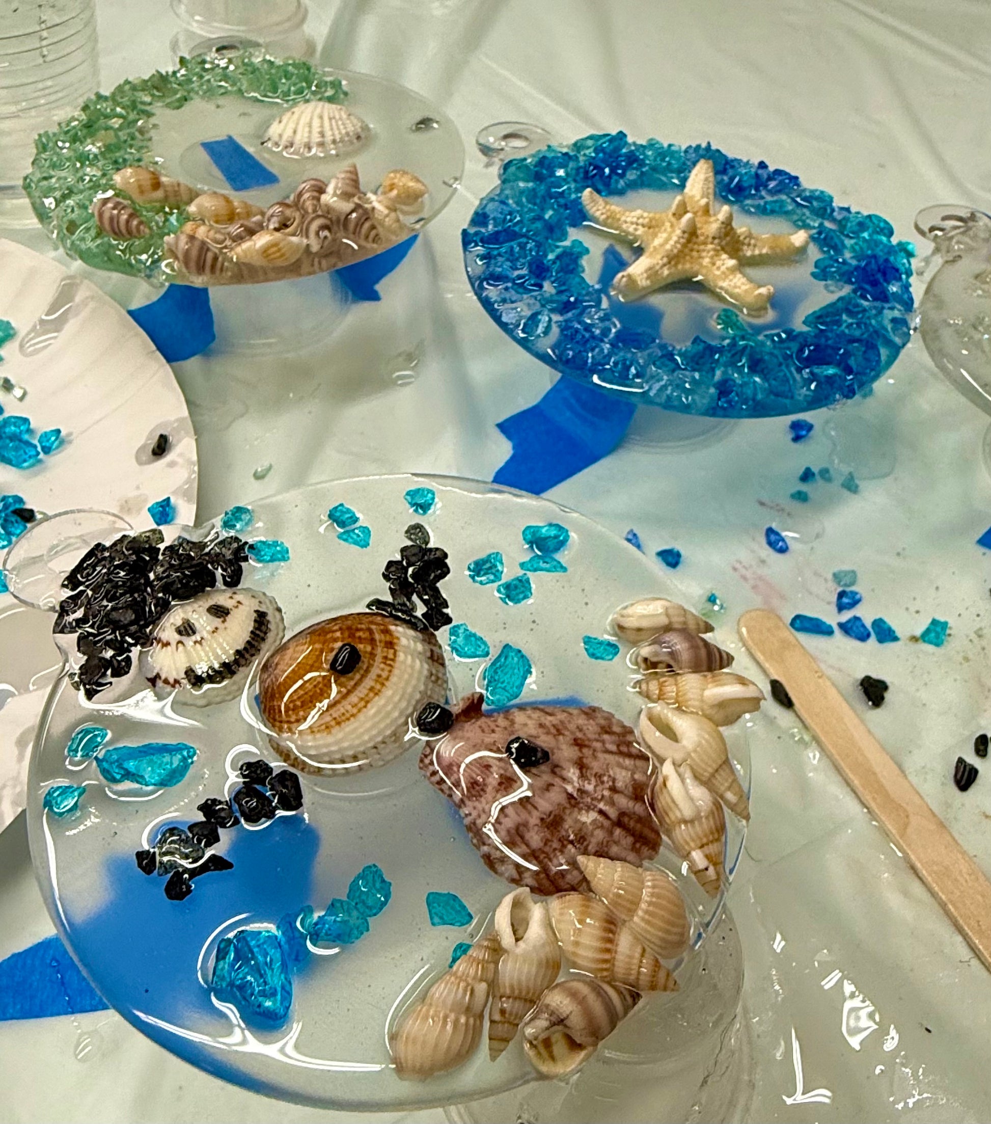 *You will choose your crushed glass colors at the workshop. Available colors: Greens, blues, purple, pink, white, and red.