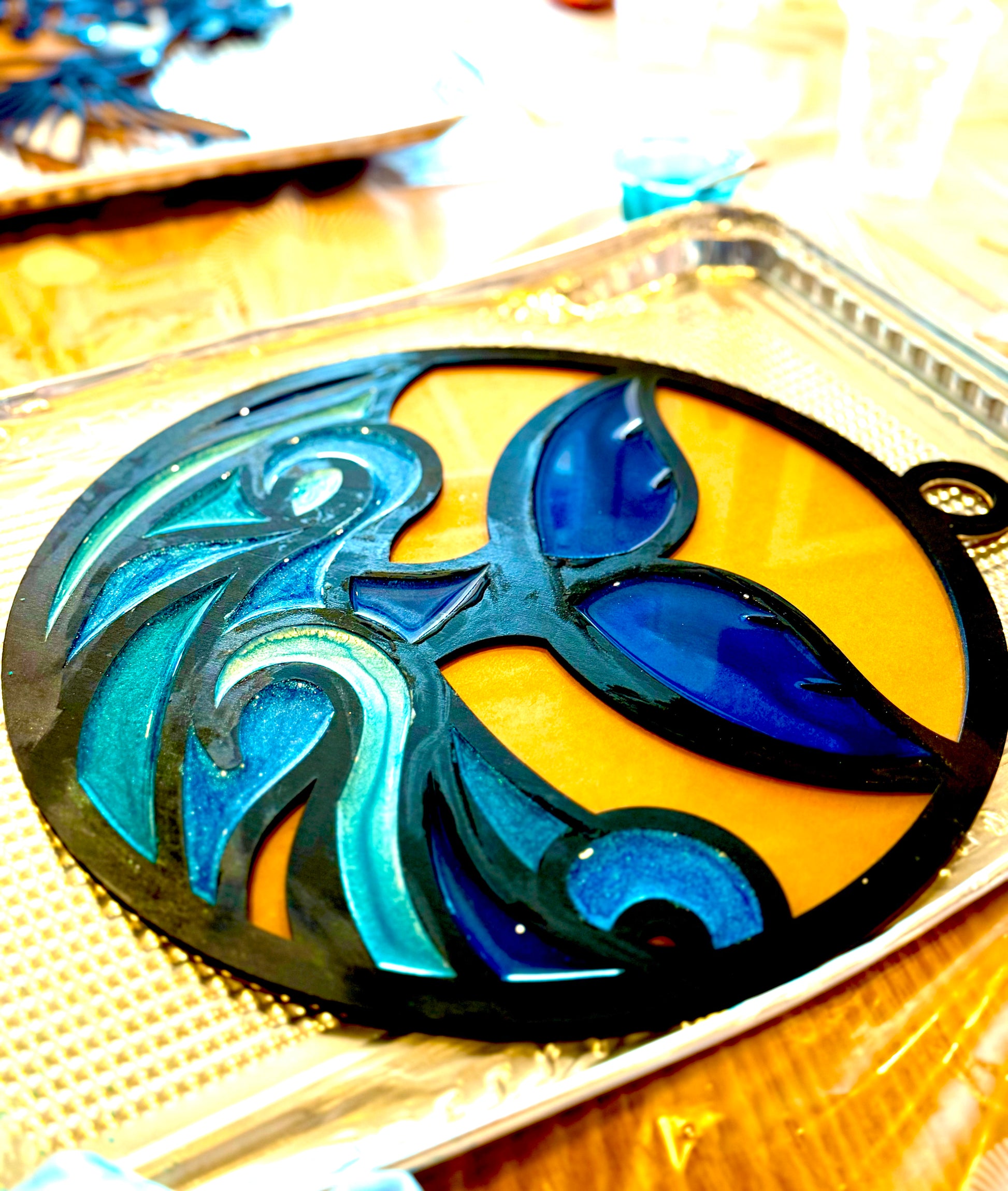 Socialize with your friends or new ones as you create a stunning faux stained glass piece! Bring snacks if you like!
