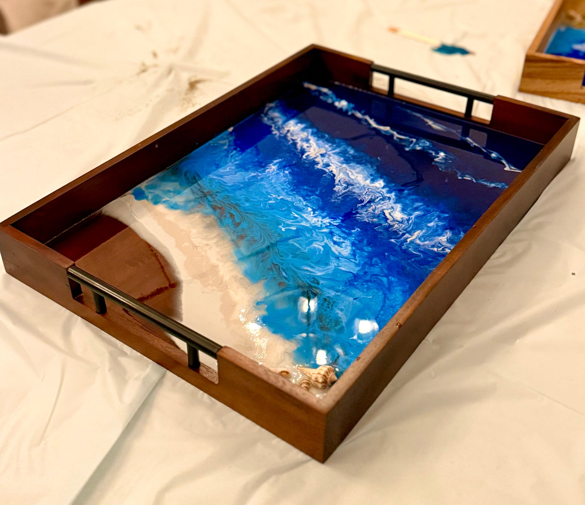 ***Please note that we provide suggested designs for your resin art but you will choose your colors and design. Each piece will be unique.