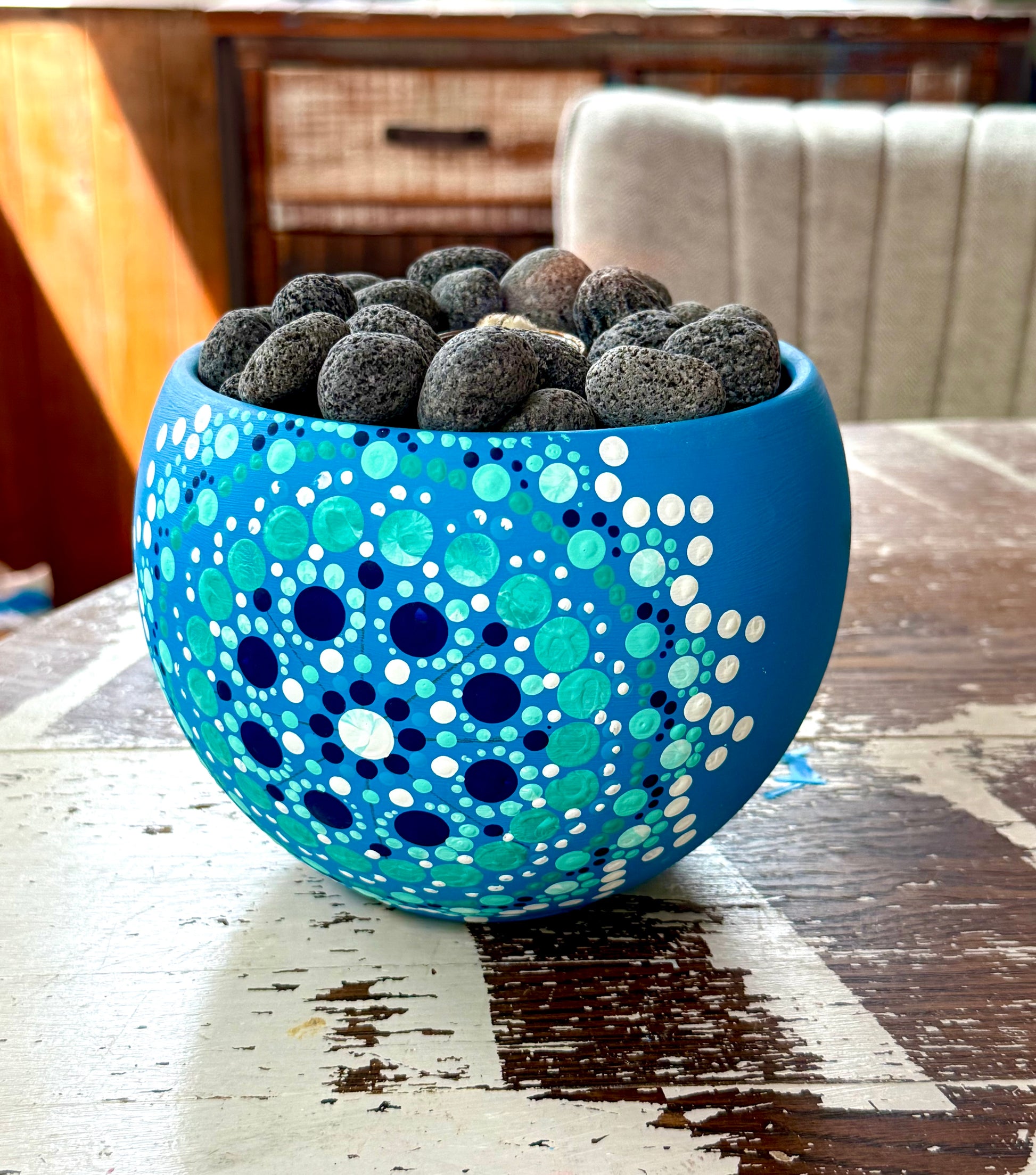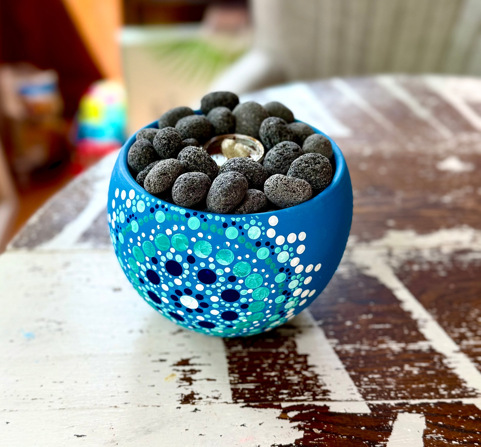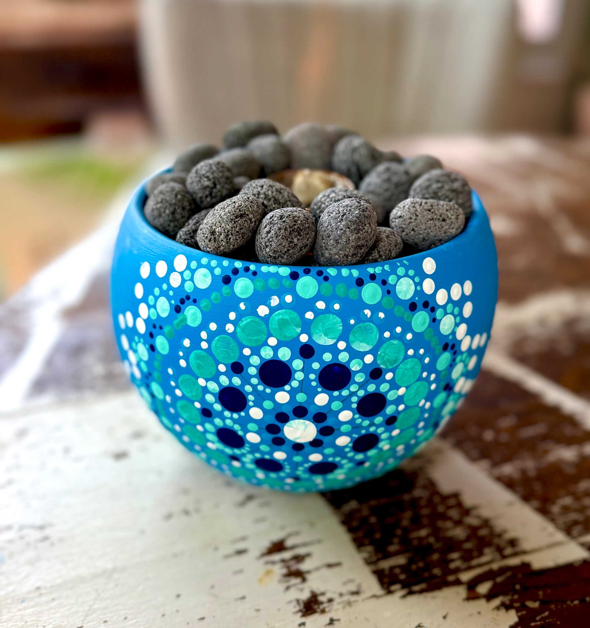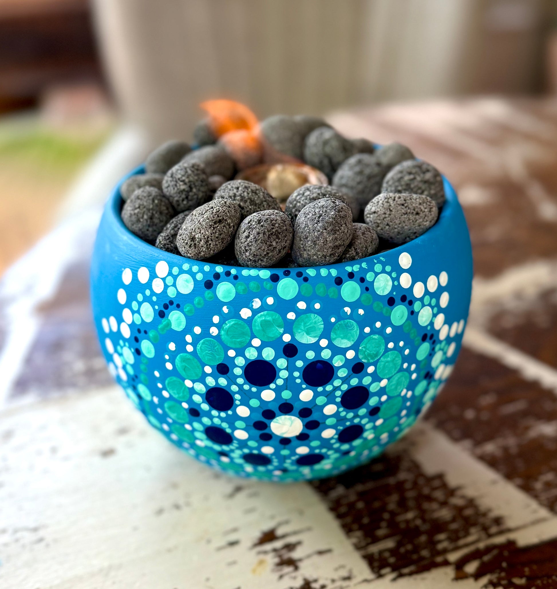 Create your own mandala fire bowl at home with friends! Paint, design, and assemble your fire bowl!