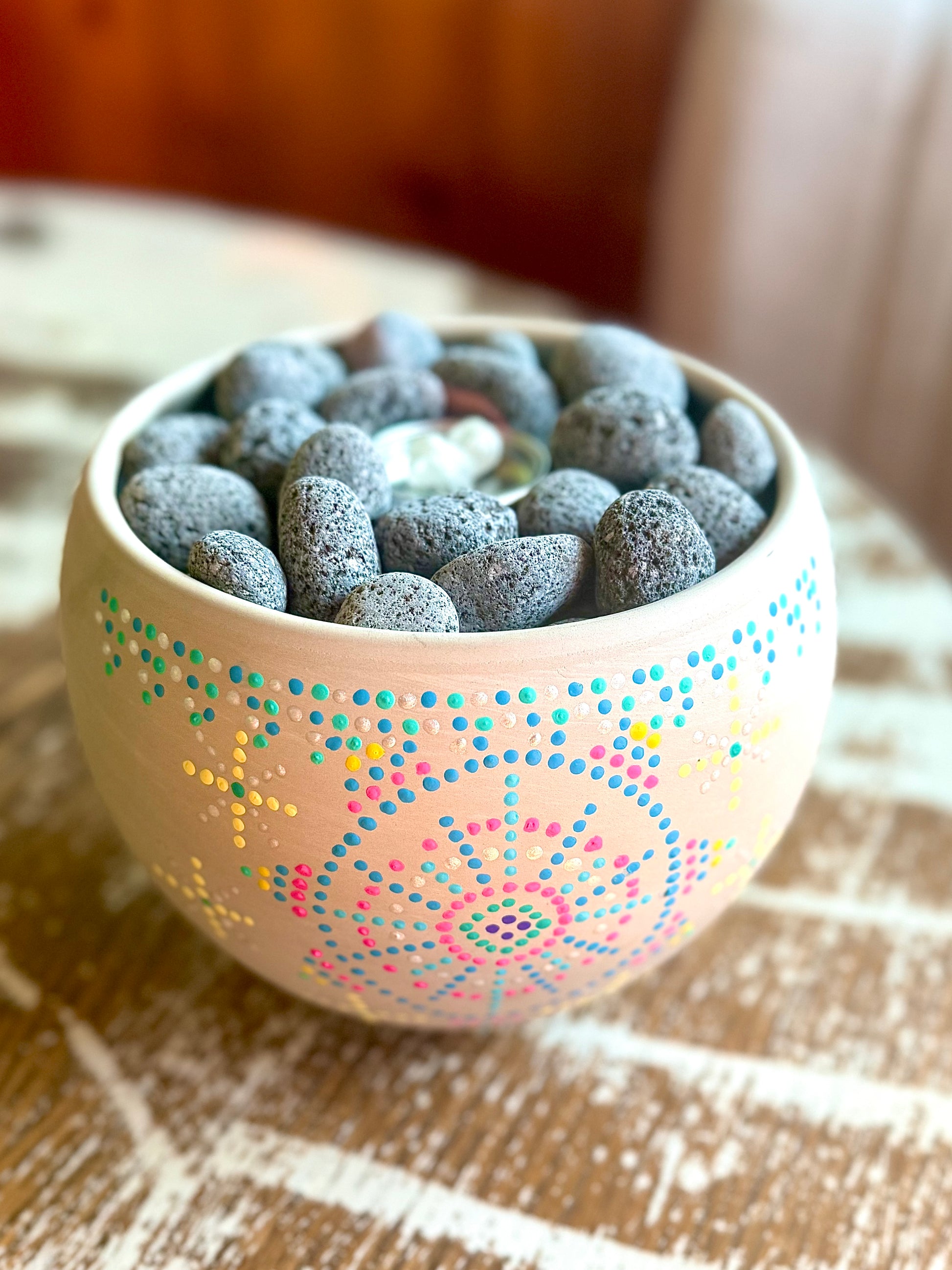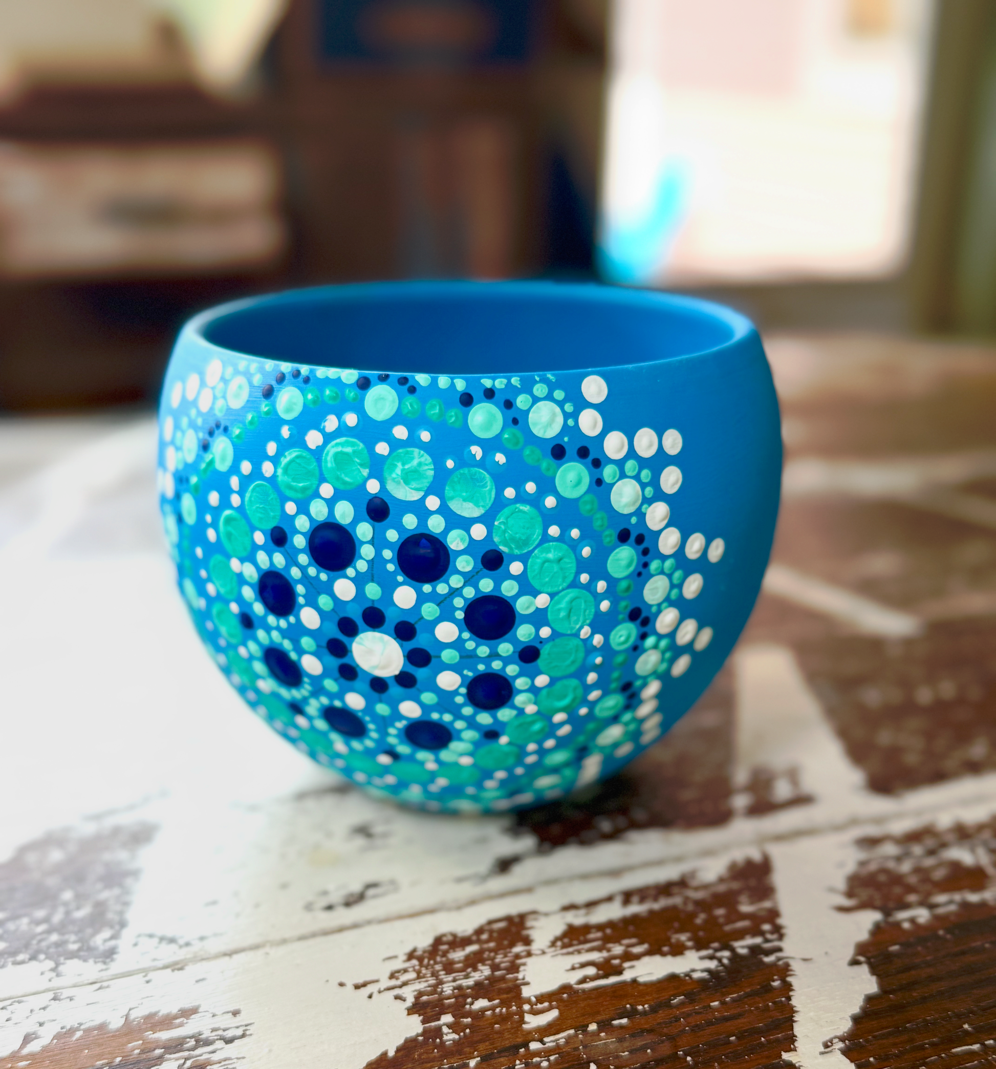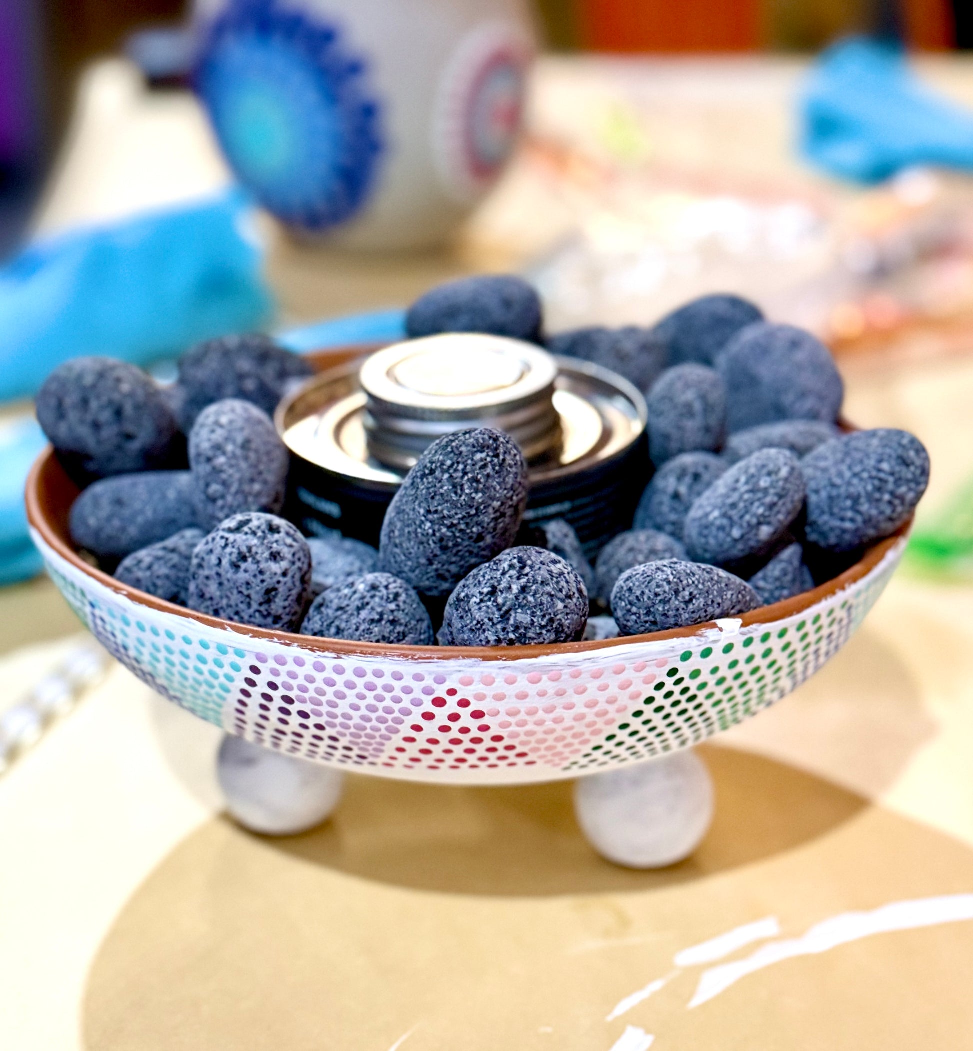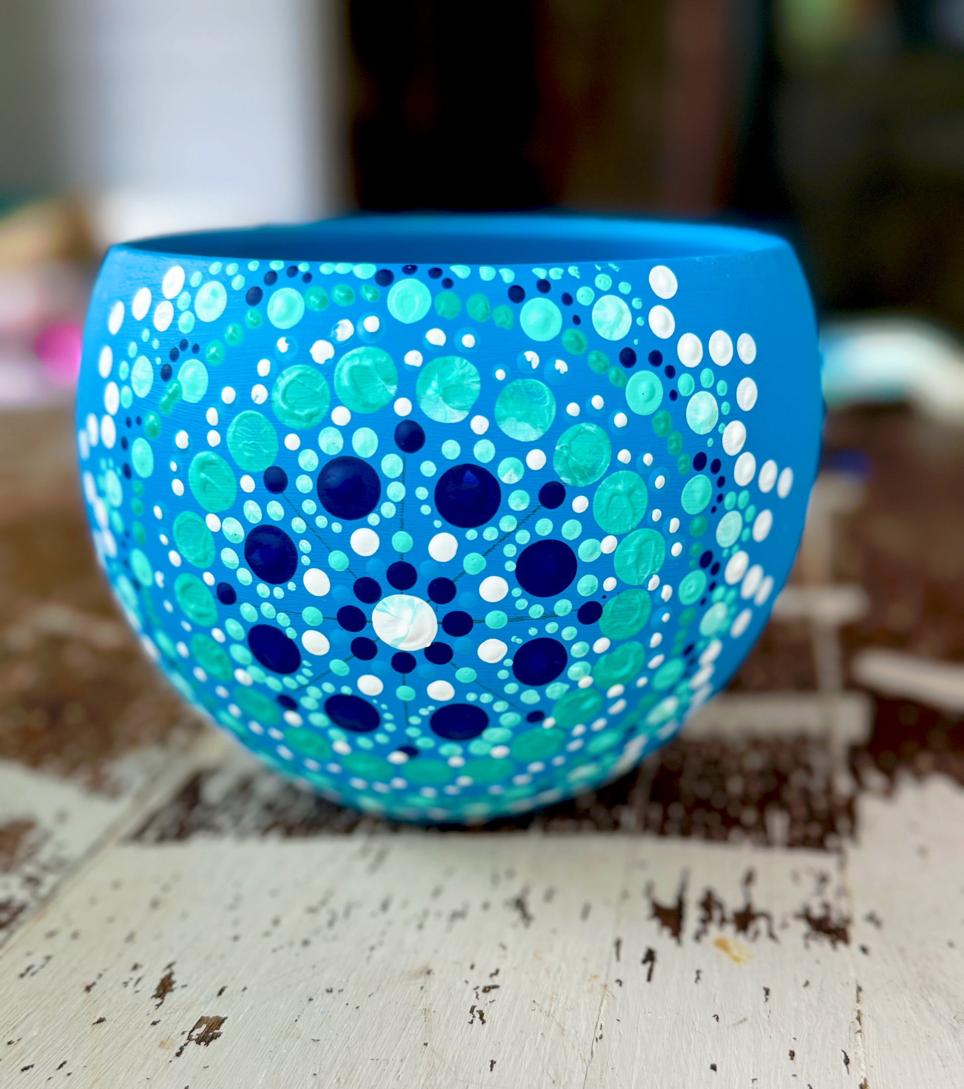 Create your own mandala fire bowl at home with friends! Paint, design, and assemble your fire bowl!