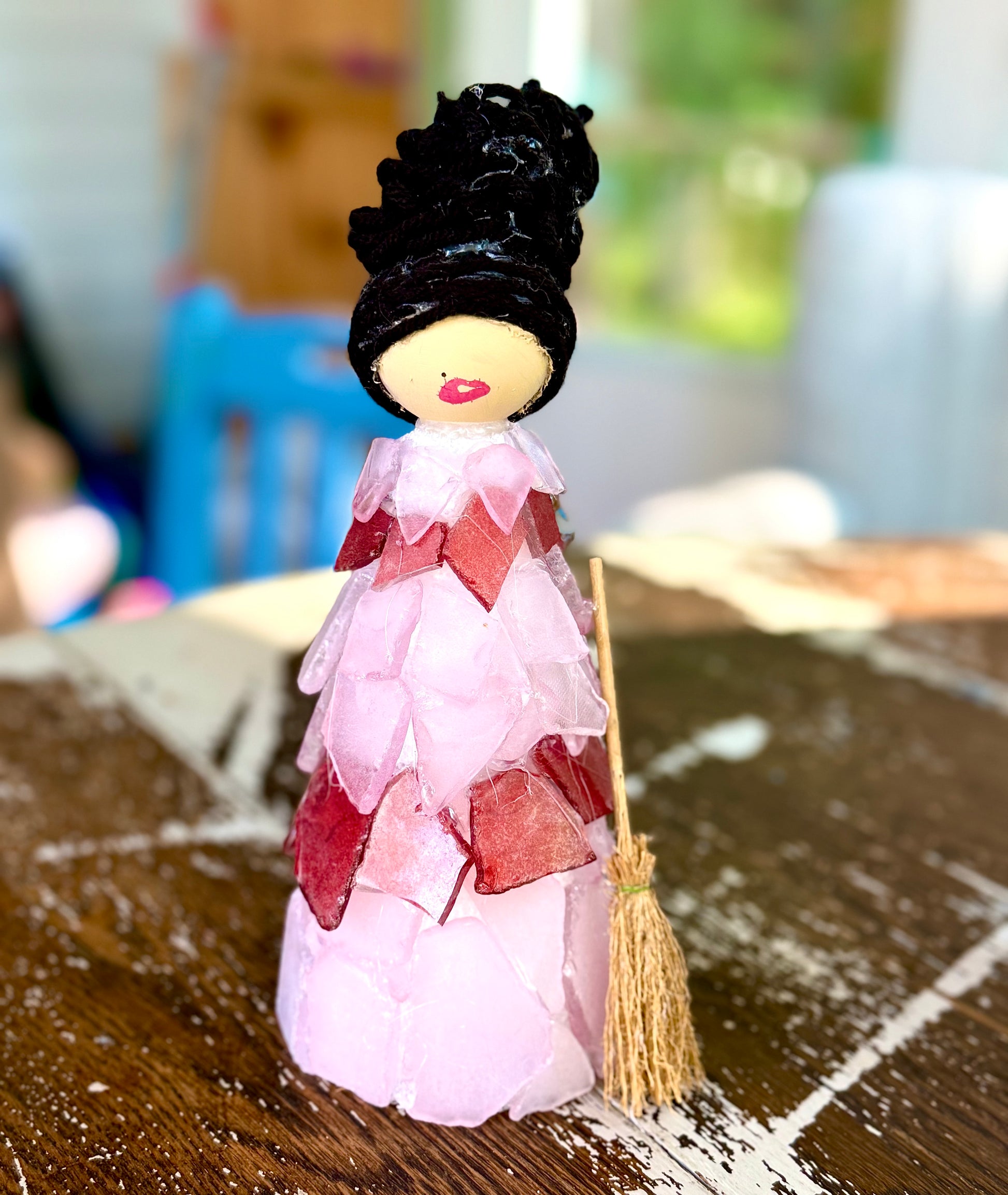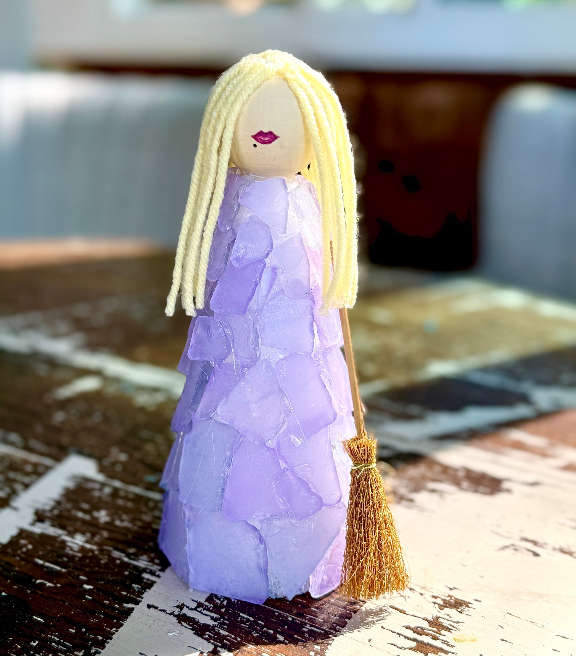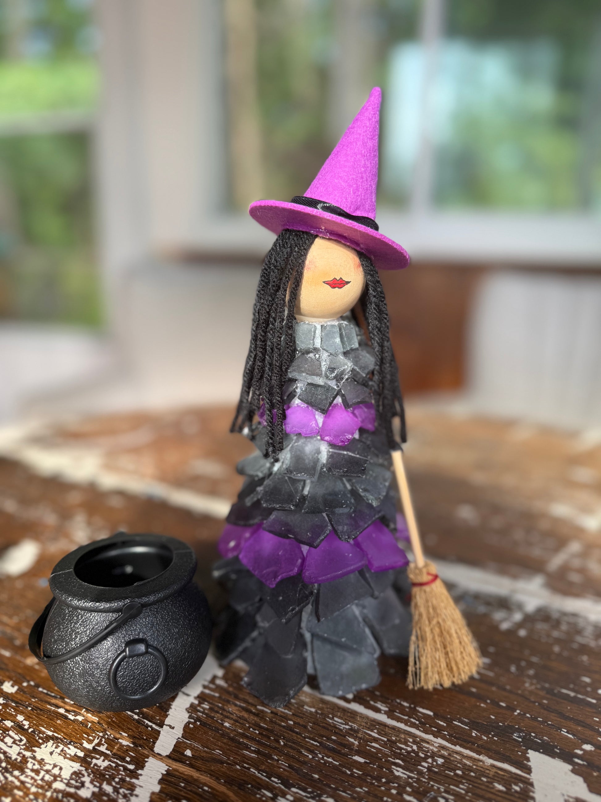 We will walk you through creating this beautiful decor piece that will be a wonderful addition to your home for years to come. Kit will come with everything needed to complete your beautiful Sea Glass Light up Witch including lights, hair, hat, broom, etc.