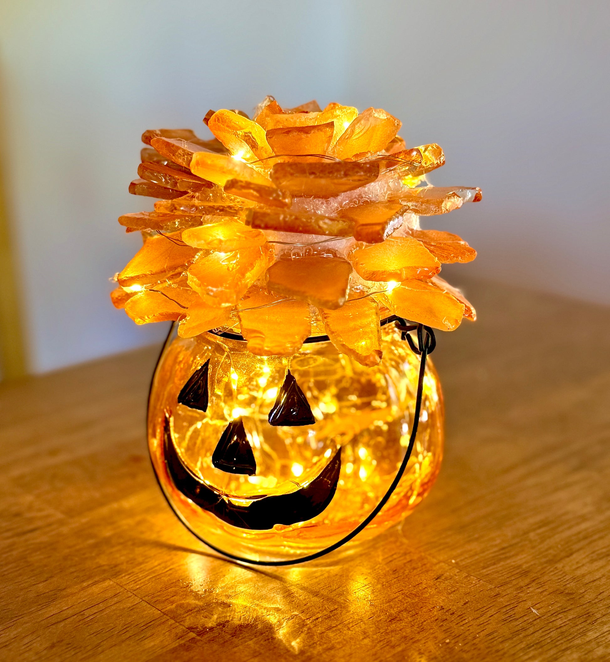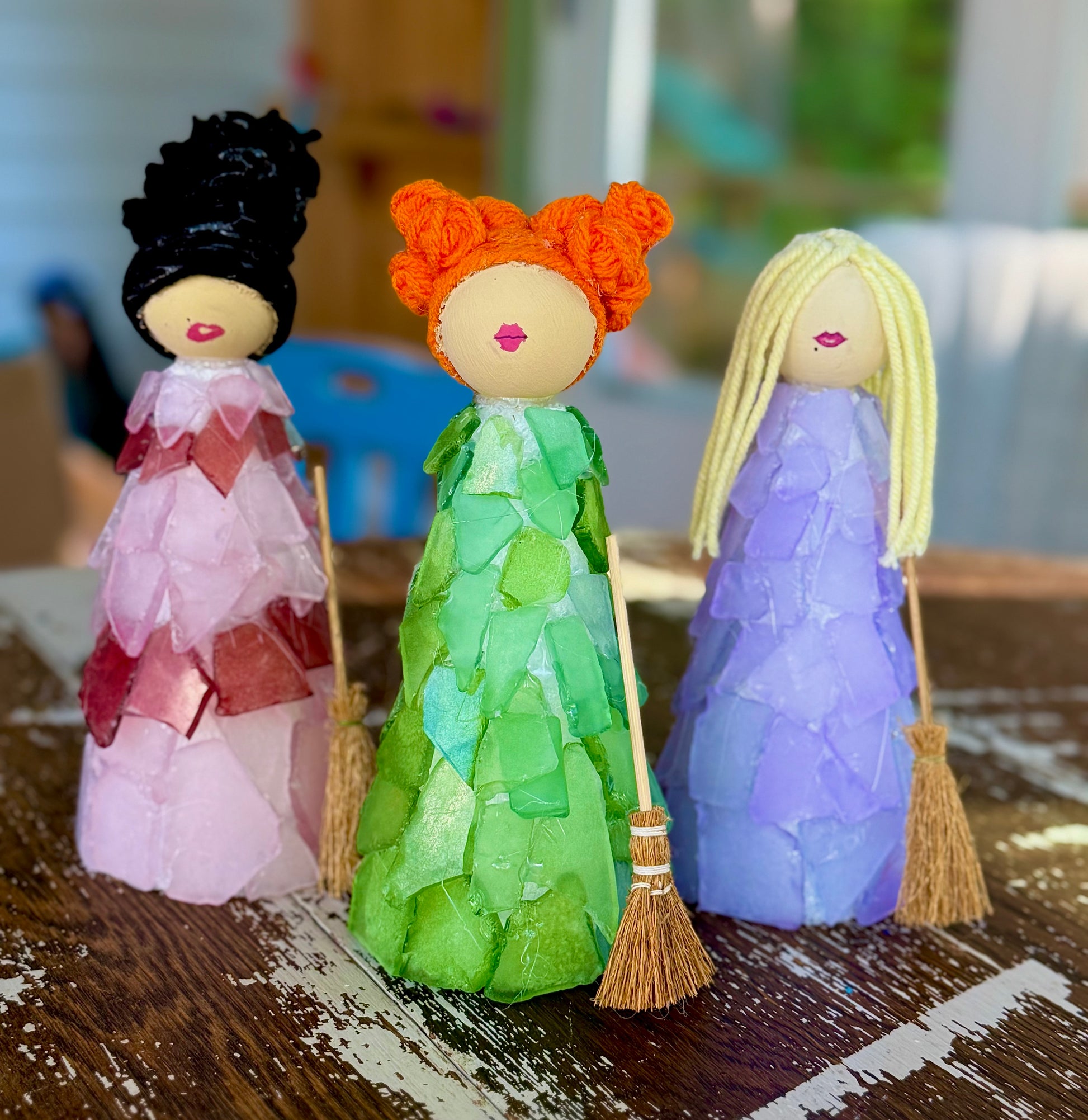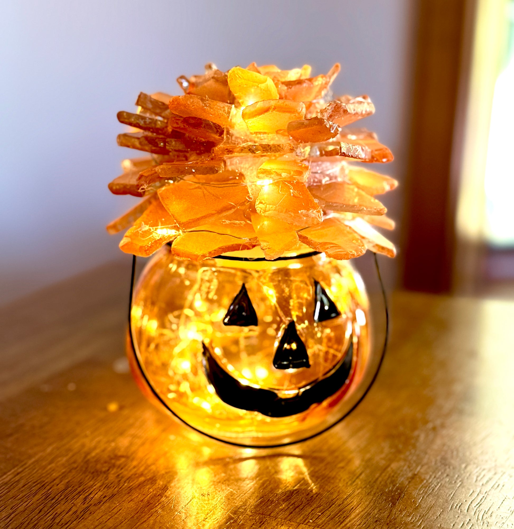 Make light up Sea Glass Sanderson Sisters, a witch, cauldron, or pumpkin succulent in the comfort of your home!!